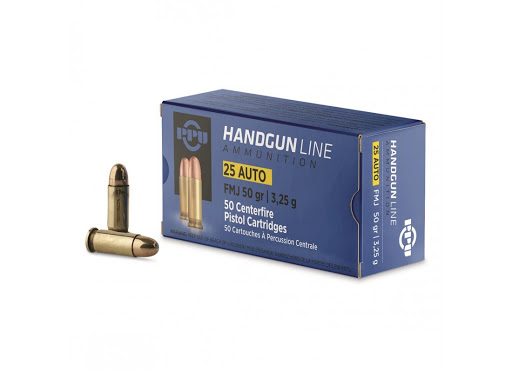 Naboj PPU .25 Auto FMJ 3,25g/50grs 50/1